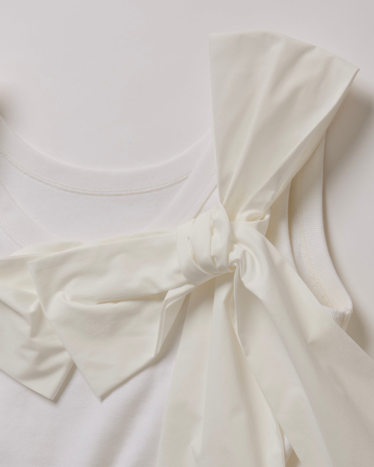 羽のようにビッグサイズのリボンが添えられたロマンティックなタンクトップ。