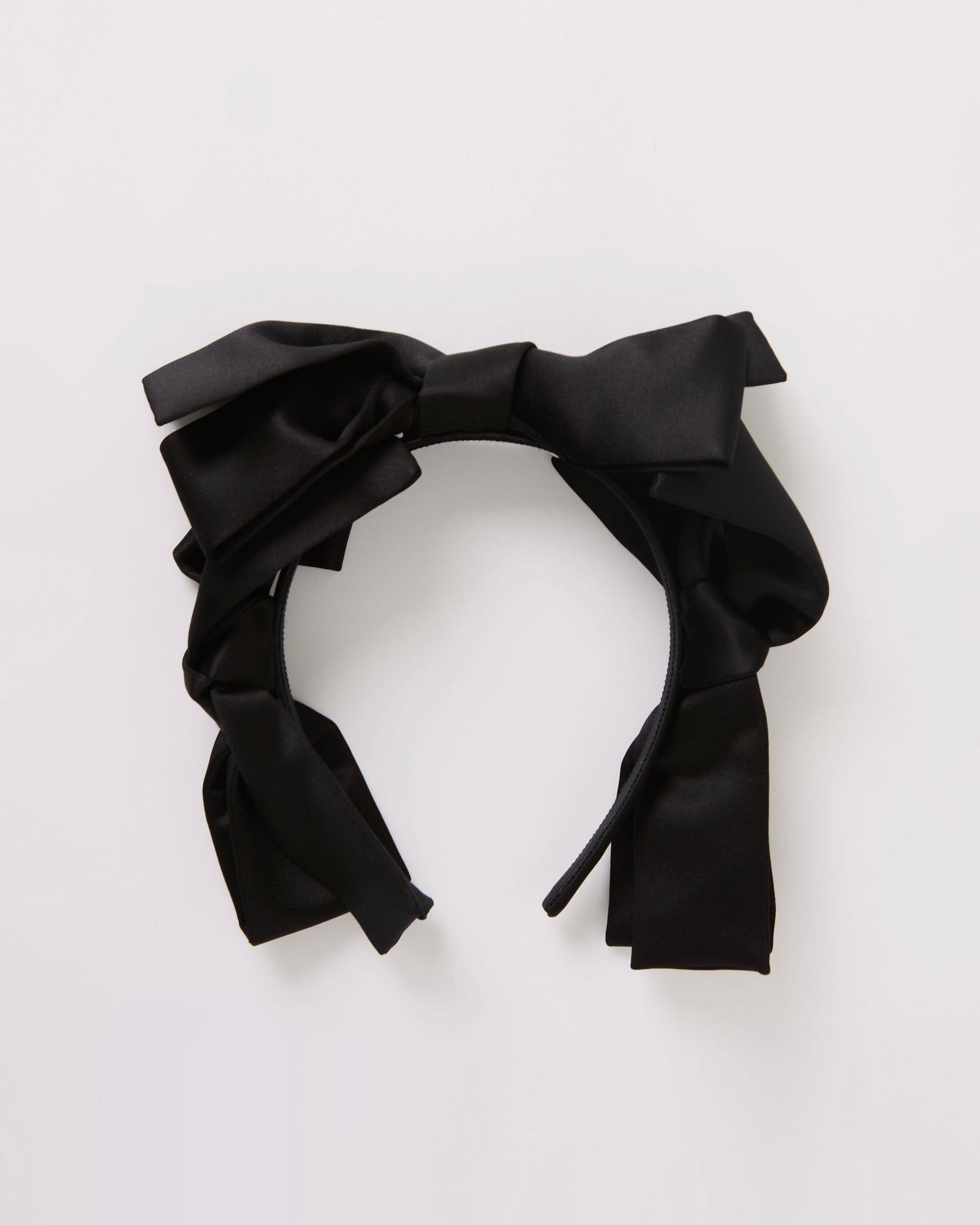 大きなリボンが3つ並んだカチューシャ。リボンの向きが交互についているため、甘すぎずモードな雰囲気を演出してくれます。