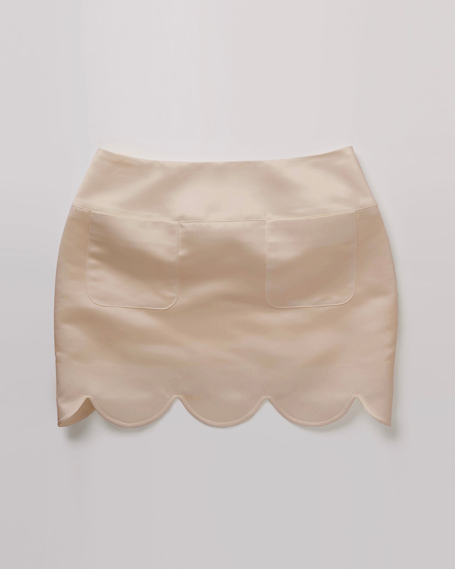 Satin Scalloped-Hem Mini Skirt(Beige)